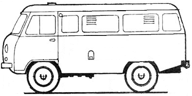 | UAZ 3741 on uudistettu versio mallista UAZ-452. Muutoksia vanhaan malliin ovat esim. 2-piirinen jarrujärjestelmä ja nestekäyttöinen kytkin. | |